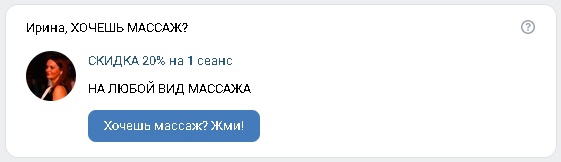 Одногруппница порекомендовала меня как хорошего таргетолога. Задача от Заказчика: «Раскачать» группу массажного салона. Отмечу, что у Заказчика в группе были сообщения, но не было настроено ни чат-бота, ни воронки трафика. Не было никаких приветственных бонусов.